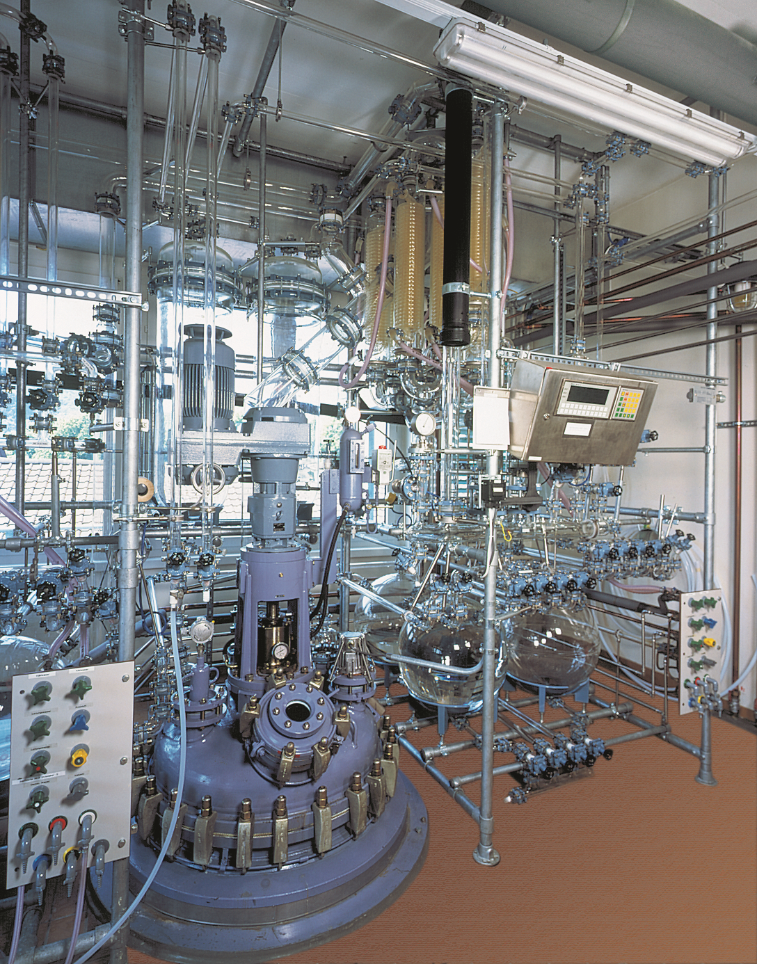 Production-scale reactor systems are mainly used as process equipment for pharmaceutical and chemical manufacturing. These systems consist of glass-lined reactors and distillation overheads made of borosilicate glass and are always specifically engineered according to customers’ specifications.