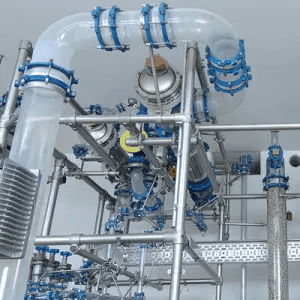 The design varies between multi-purpose product / process specific setups. These apparatus can be operated at full vacuum and low pressure. A broad range of chemical reactions can be performed and a large variety of chemicals can be processed, thanks to the highly corrosion resistant materials in contact with the process media.
