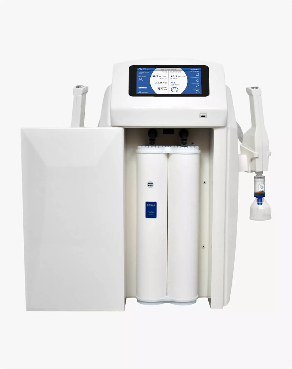 Adrona's dual systems - Gradus, Gradus EDI, Q-Front, and Q-Front EDI - provide advanced solutions for laboratories needing high-quality water. The Gradus series emphasizes advanced technology and connectivity, while the EDI versions improve efficiency and lower costs through innovative electrodeionisation. The Q-Front models simplify purification with user-friendly interfaces and low maintenance. Compact systems offer an efficient and space-saving solution for producing ultrapure water directly from tap water. Collectively, these systems ensure reliable water quality and cost reduction, enhancing research and analytical capabilities.